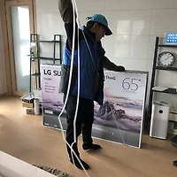 그래서 벽걸이로 설치를 하고싶었지만 벽걸이로 할경우 아트월에 구멍을 내야하기 때문에 다른 방법을 찾아보니 벽걸이처럼 TV의 높이를 올려주는 방식의 스탠드가 있었습니다.