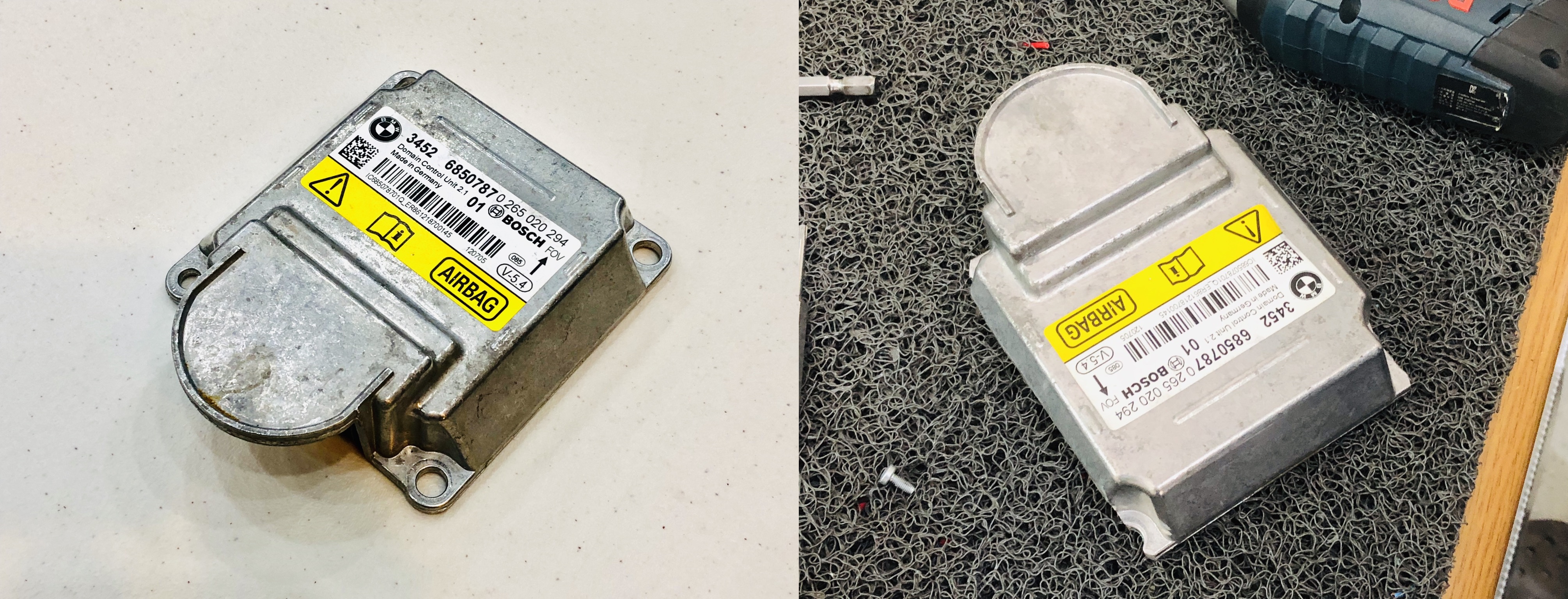 왼쪽이 신형 ICM의 사진인데 제 차량에는 폭이 맞지 않아서 오른쪽처럼 양옆부분을 다 잘라냈습니다.