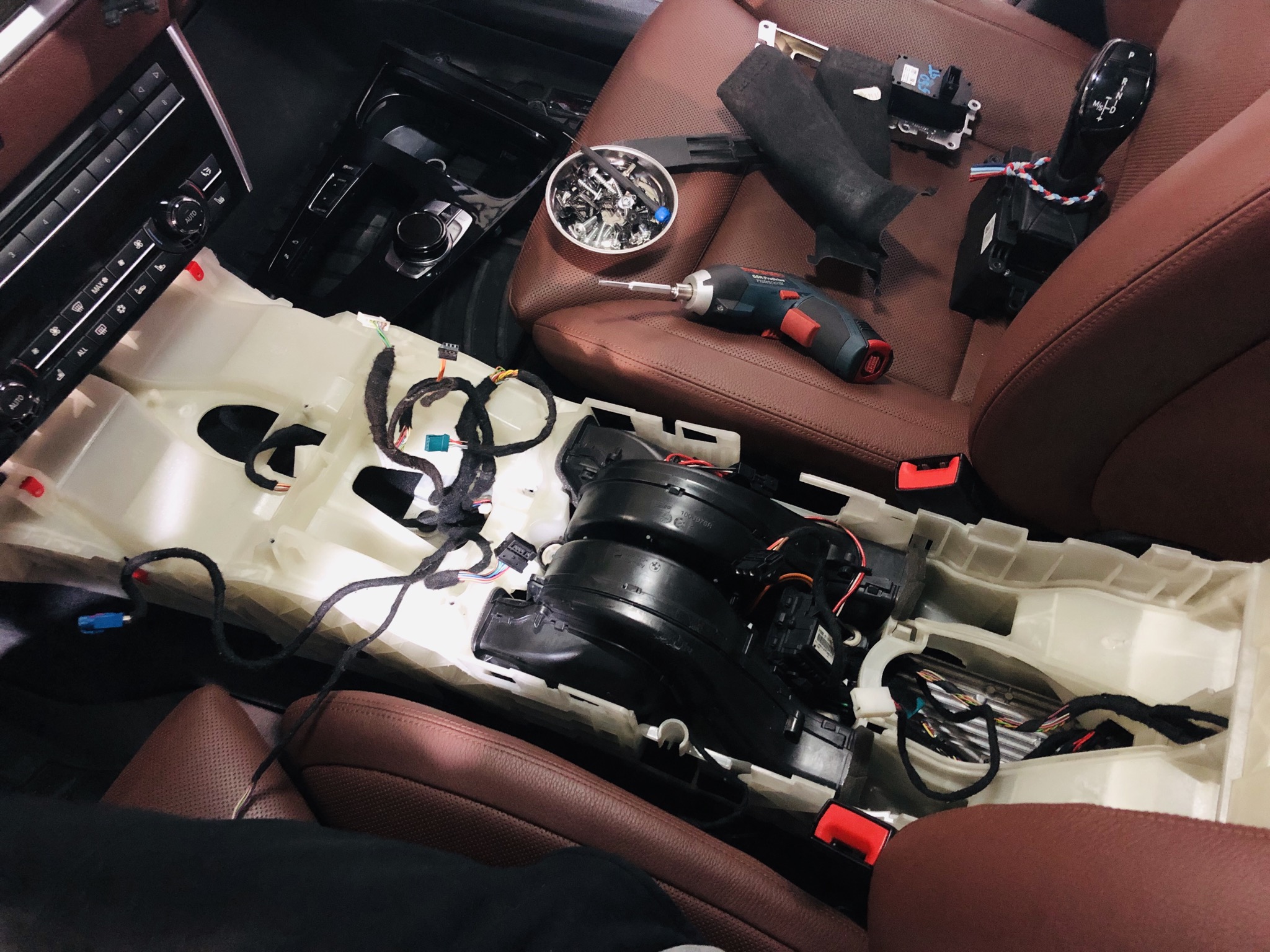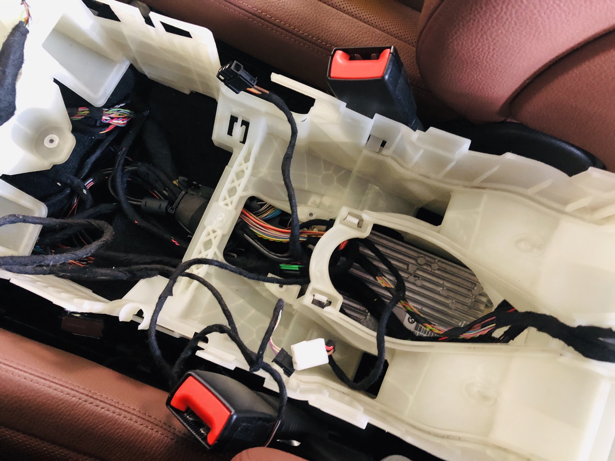 ICM은 차량의 센터콘솔 가장 밑에 있기때문에 이 ICM을 교체하려면 트림 분해에만 한시간정도의 시간이 필요합니다. F07은 다른 차량들과 달리 센터콘솔 내부가 2중으로 되어있기 때문에 두개 다 분해를 해야해서 시간이 다른 차량보다 더 오래걸립니다.