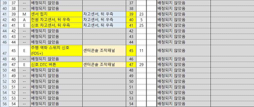 시간이 오래걸리긴 했지만 ICM을 신형으로 교체를 했고 커넥터는 동일하게 54핀이지만 핀 배치가 한개 빼고 전부 변경되어서 핀 재배치 작업 후 차에 전원을 넣고 키온을 해보니 에러가 어마어마하게 뜹니다.