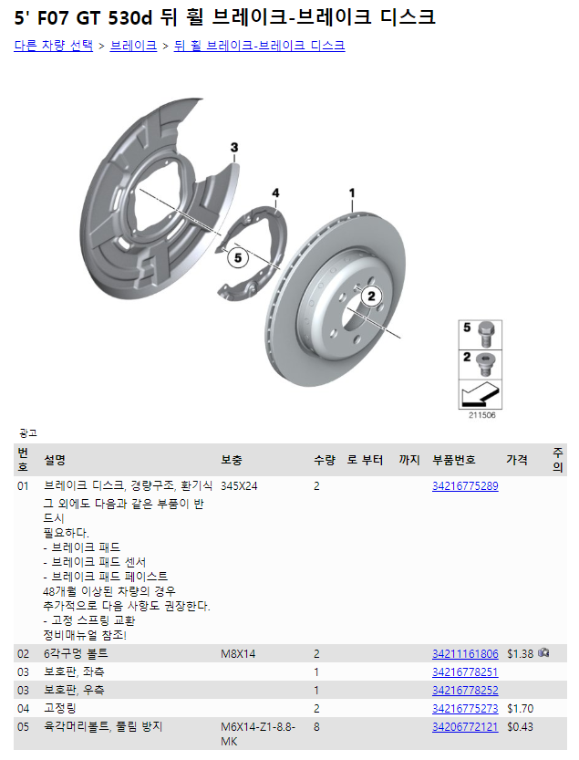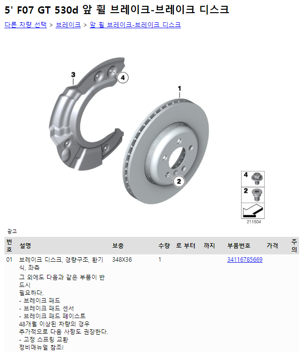BMW의 5GT 차량은 차량의 트림에 상관없이 20d, 30d, 35i 전부 동일한 대용량 1P(플로팅방식 캘리퍼)가 적용된 브레이크 시스템이 장착되어 있습니다.