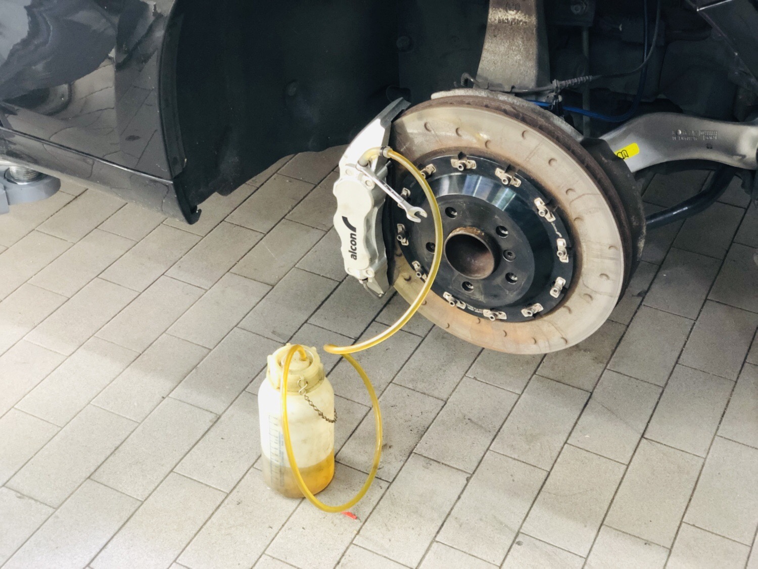 캘리퍼는 프론트만 교체했지만 리어까지 전부 에어빼기를 했고 교체하지 않은 리어쪽에도 생각보다 많은 에어가 나오더라구요. (참고로 에어빼기는 리어부터 작업했는데 멀리 있는곳부터 작업을 해야한다고 들었습니다.)