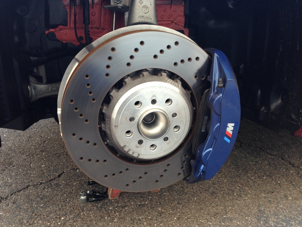 참고로 위 사진은 F10 M5차량의 프론트 브레이크인데 400mm 타공 디스크 로터와 고정캘리퍼 방식의 6P 캘리퍼가 적용되어 있습니다.