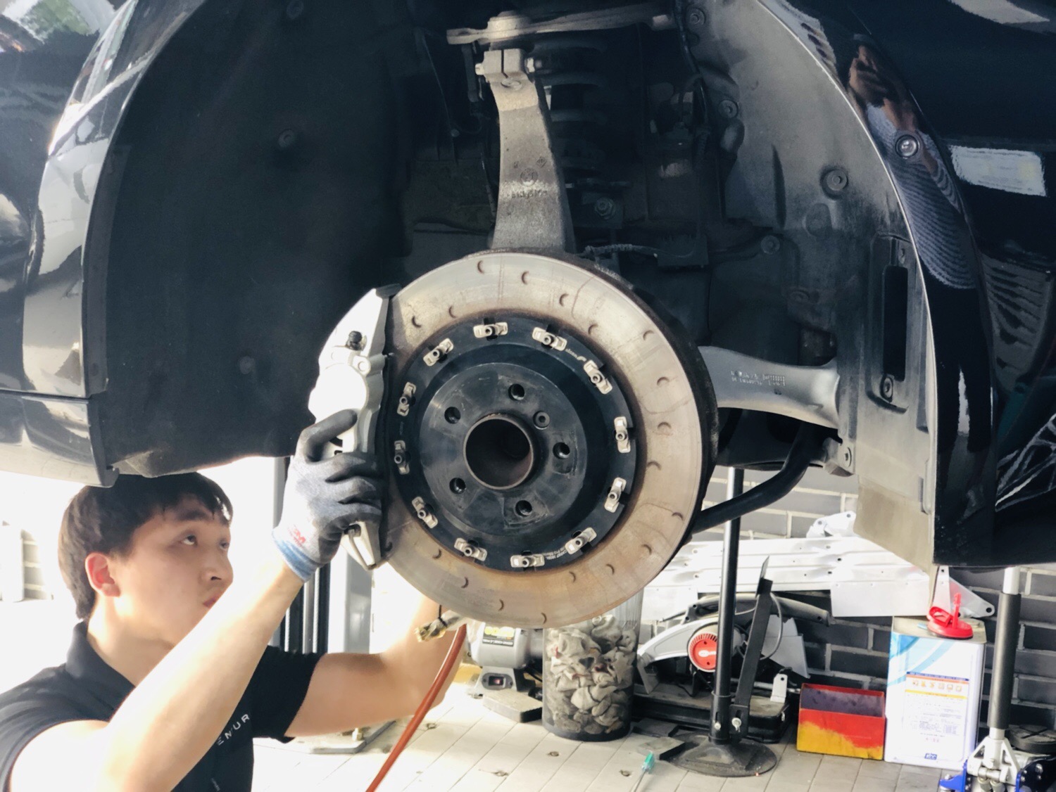 장착의 경우 캘리퍼를 교체해야하기 때문에 브레이크액 에어빼기를 해줘야하는데 다른차량의 DSC 교체작업할때 해본결과 브레이크 페달을 밟아서 에어를 빼는건 한계가 있는것 같아서 비용이 들더라도 기계를 연결해서 제대로 빼는게 좋을것 같아 과천에 있는 스톨즈에 방문해서 장착을 진행했습니다.