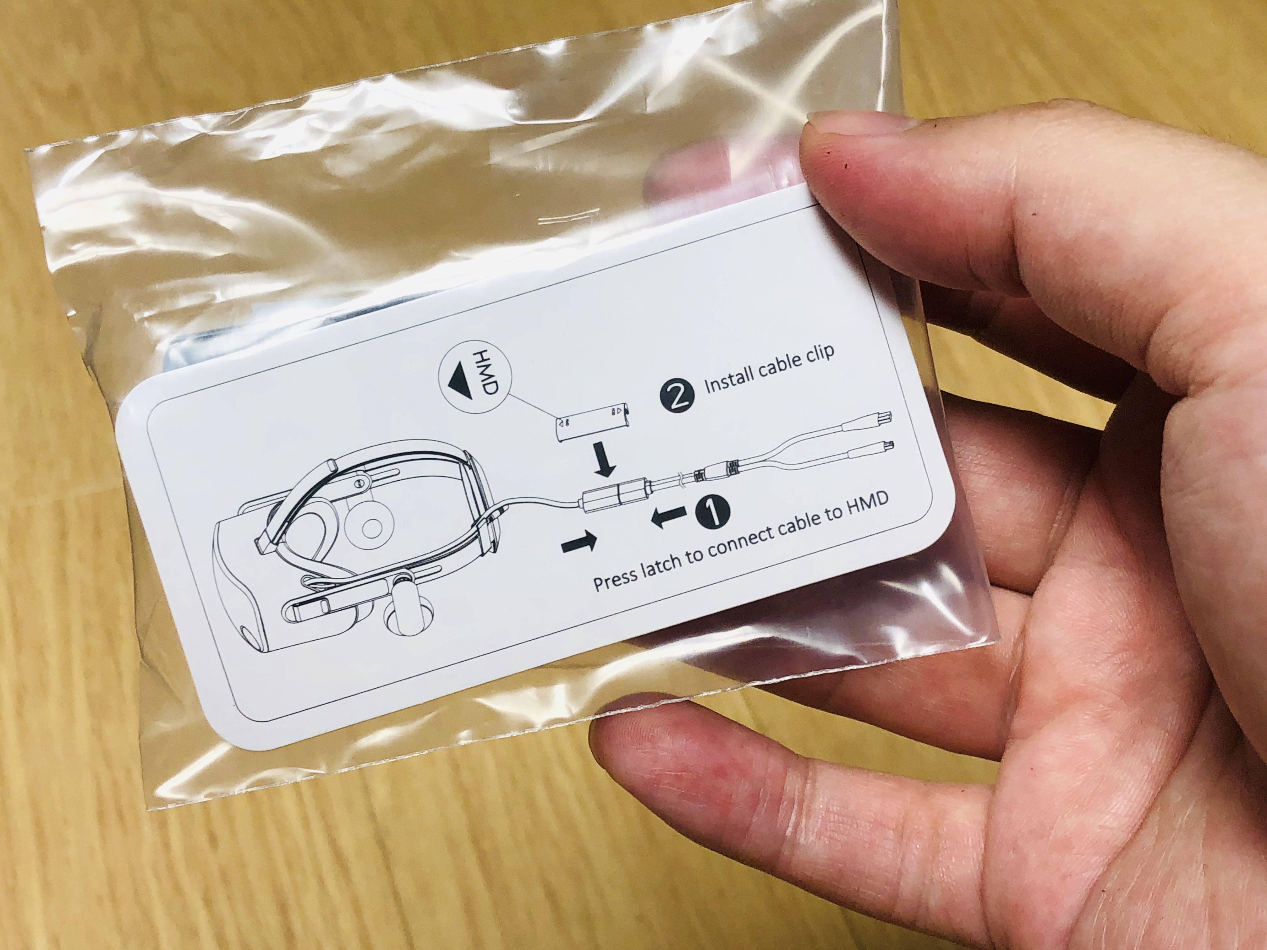 HMD는 케이블과 커넥터로 연결되는데 혹시 모를 커넥터 빠짐에 대비해여 이렇게 커넥터 양쪽을 잡아주는 플라스틱 케이블 클립이 들어있습니다.
