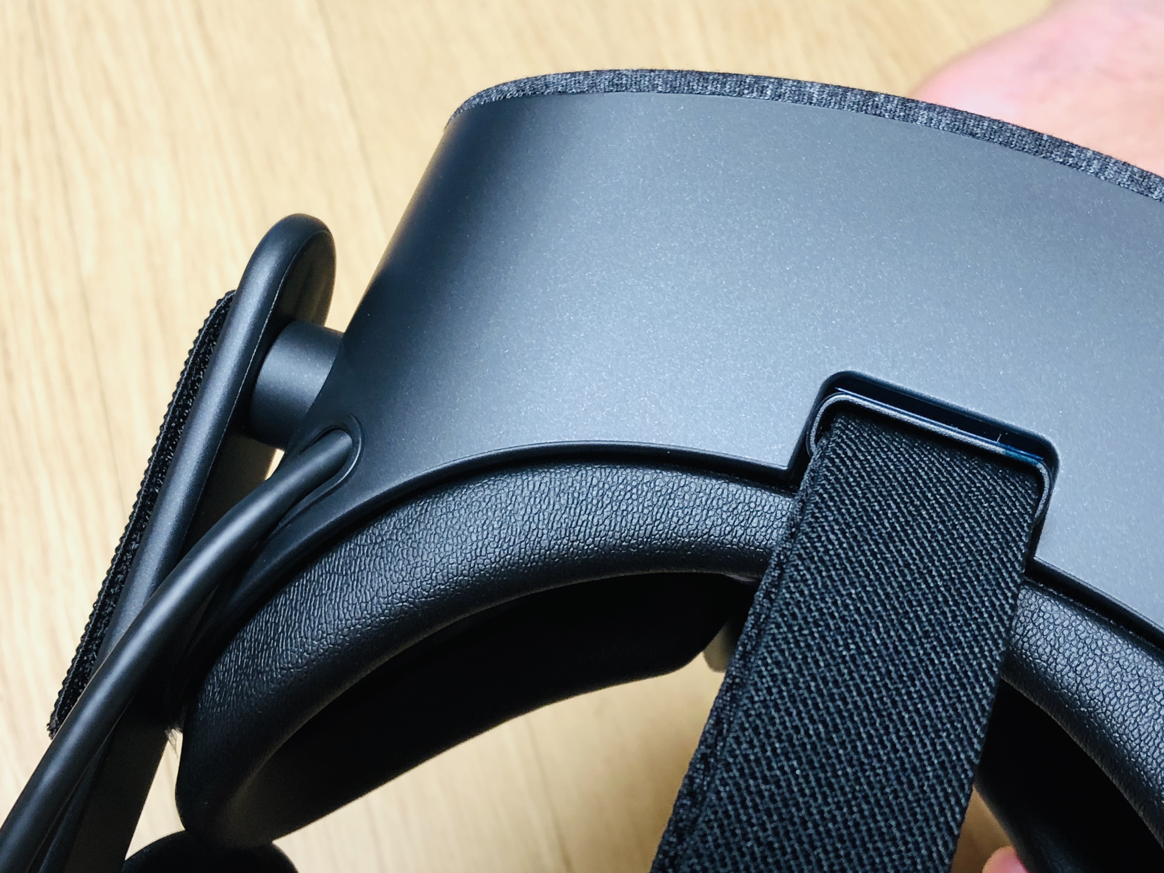 리버브의 한가지 장점은 뒷부분에 보이는것처럼 케이블이 커넥터로 처리되어 HMD 부분과 케이블이 분리 가능하게 되어있습니다.