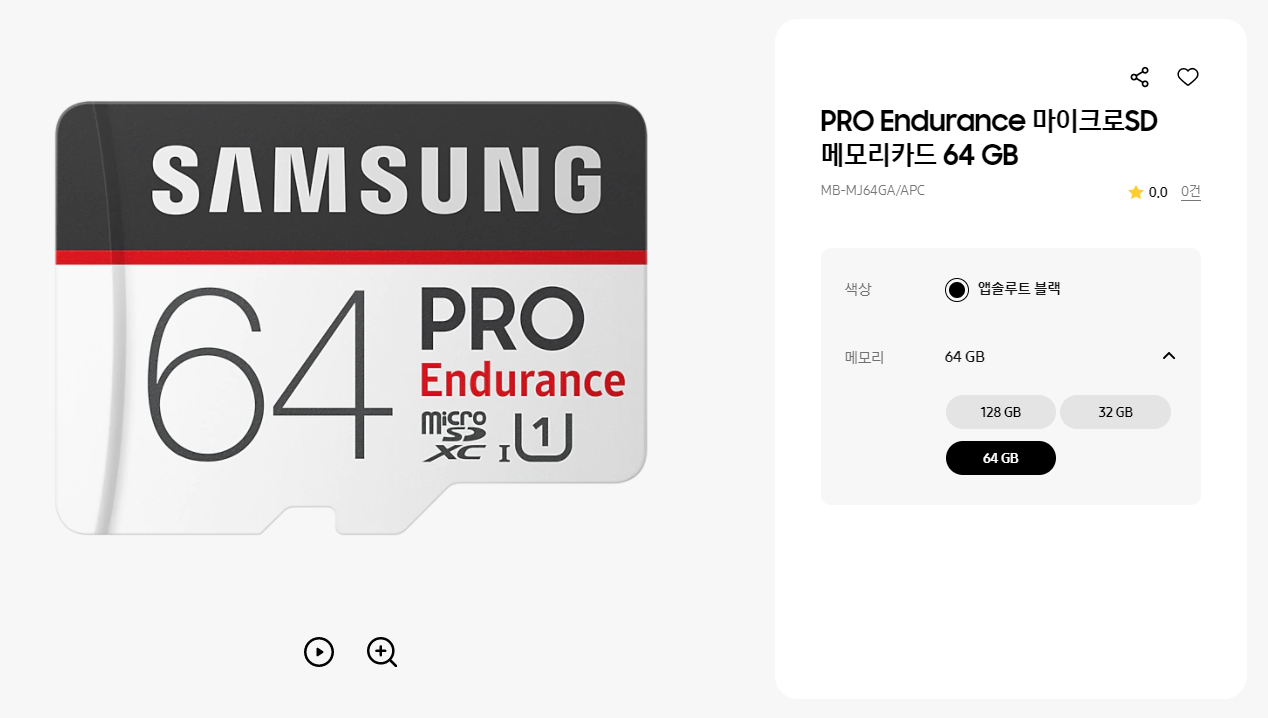 출처 : https://www.samsung.com/sec/memory-storage/pro-endurance-microsd-card/MB-MJ64GA/APC/