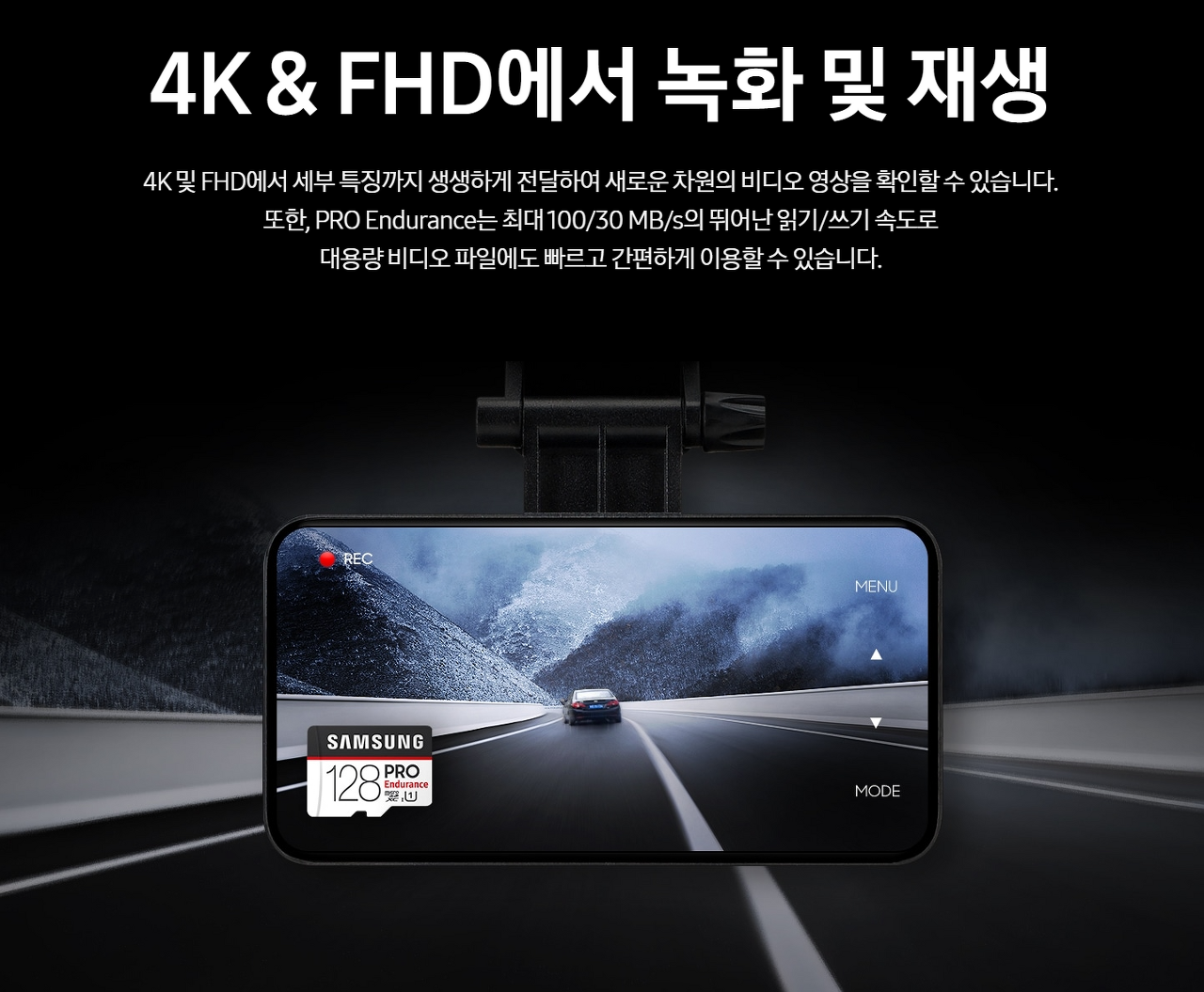 그리고 데이터가 아무리 신뢰성이 높다고 해도 속도가 너무 느리면 문제가 되는데 삼성 PRO Endurance MicroSD에서는 읽기 100MB/s, 쓰기 30MB/s로 QHD 녹화에는 충분한 속도를 제공하고 있습니다.
