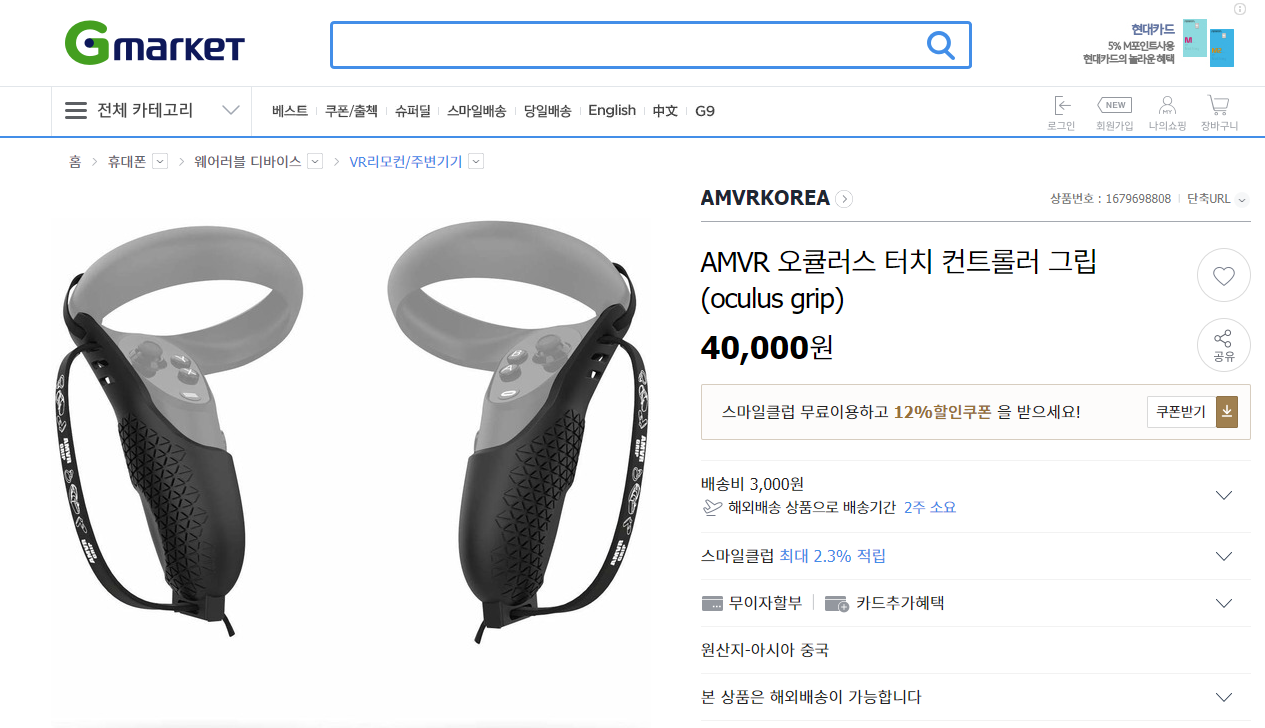 제가 사용중인 oculus rift s용 컨트롤러용 그립도 몇군데 회사에서 판매를 하고 있었는데 전 국내에 정식으로 판매하고 있는 AMVR사의 제품을 선택했습니다. 참고로 oculus rift s와 quest는 동일한 컨트롤러를 사용하기에 그립도 동일합니다.