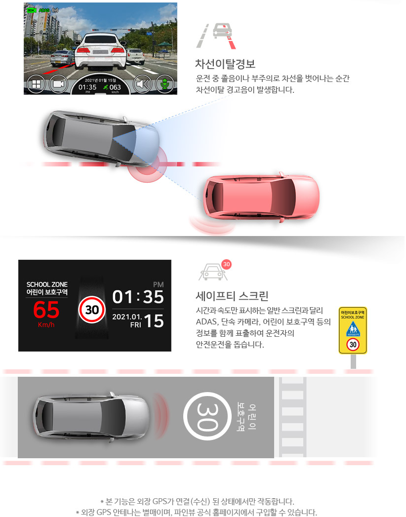 대부분 핸드폰 내비게이션 앱의 속도안내기능을 활용하시겠지만 일부 내비게이션 앱의 경우 경로설정을 하지 않은경우 제한속도 안내가 안되는 경우가 있기때문에 블랙박스의 제한속도 안내기능도 보완적인 기능으로 충분히 역할을 한다고 생각합니다.
