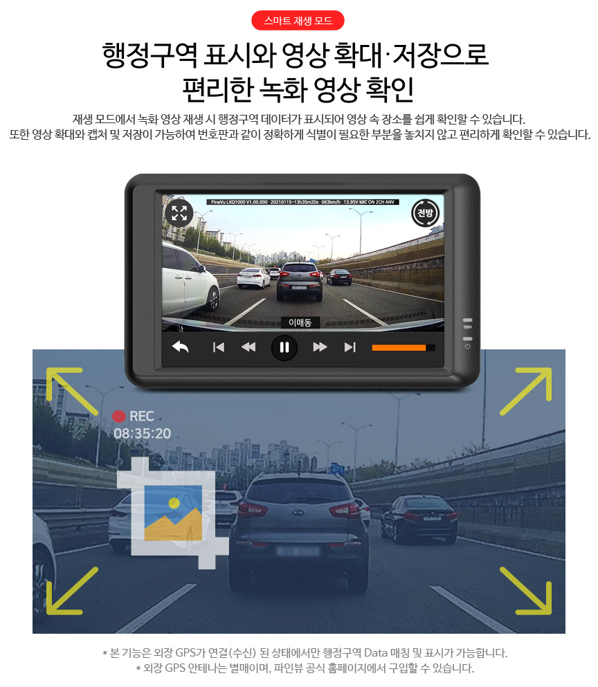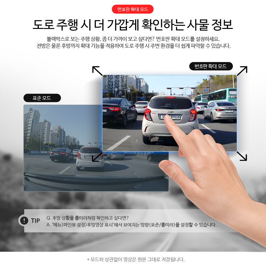 번호판 확대모드라는게 녹화하는 실시간에 작동하는 기능이라면 꽤나 신기할것 같긴한데... 녹화는 정상으로 되는데 번호판이라고 인식이 되면 해당 부분만 LCD상에 확대해서 표시를 하는것인지 아니면 단순히 그냥 화면을 약간 줌해서 확대된 화면을 LCD상에 제공하는 것인지는 모르겠네요. 이 기능은 실제 장착 후 테스트를 해봐야 할것 같습니다.