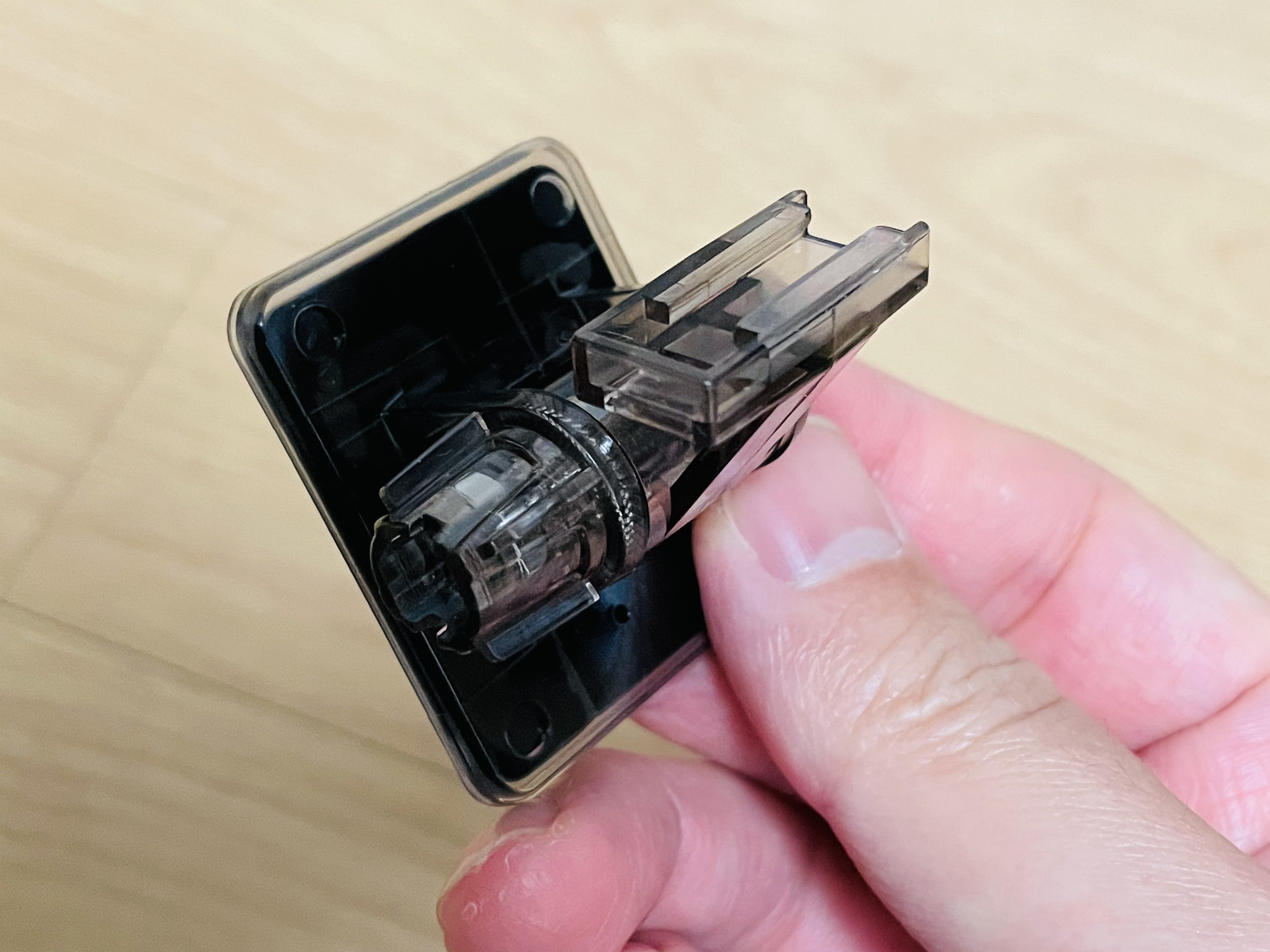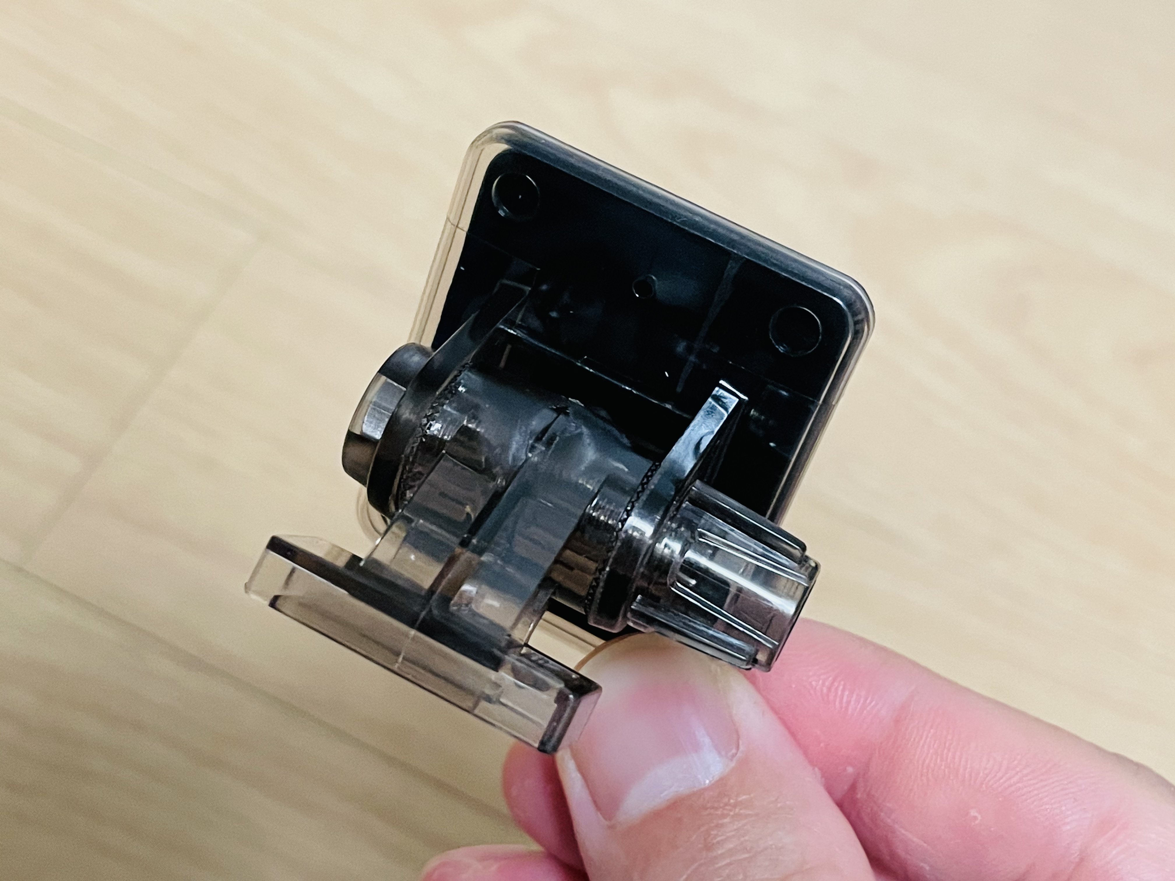 고정 브라켓의 모양도 당연히 기존 제품과는 호환되지 않으며 특이하게 투명한 재질의 플라스틱으로 되어있습니다.