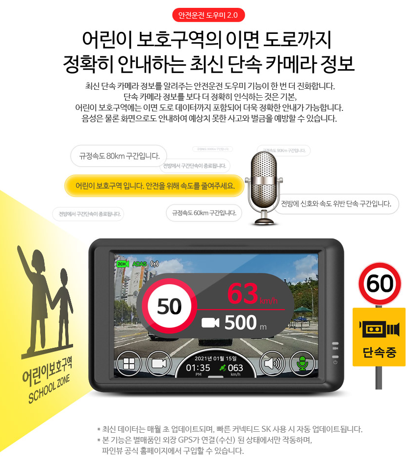 요즘 시내의 제한속도가 60Km/h에서 50Km/h로 낮아졌고 어린이보호구역의 단속이 강화되어 제한속도 안내기능은 상당히 중요한 기능이라고 생각됩니다.