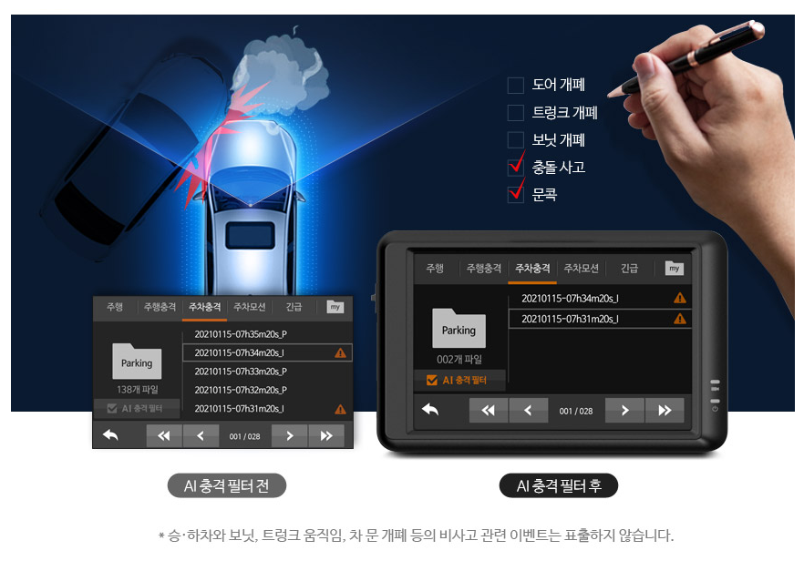 차량 시동을 끈 다음 차에서 내려 문을 닫을때 항상 충격감지 녹화가 기록되었던것 같은데...