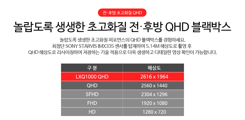 참고로 제가 기존에 쓰고있던 X2000의 경우 전방은 QHD였지만 후방은 FHD의 화질이었는데 LXQ1000은 전후방이 전부 QHD 입니다.