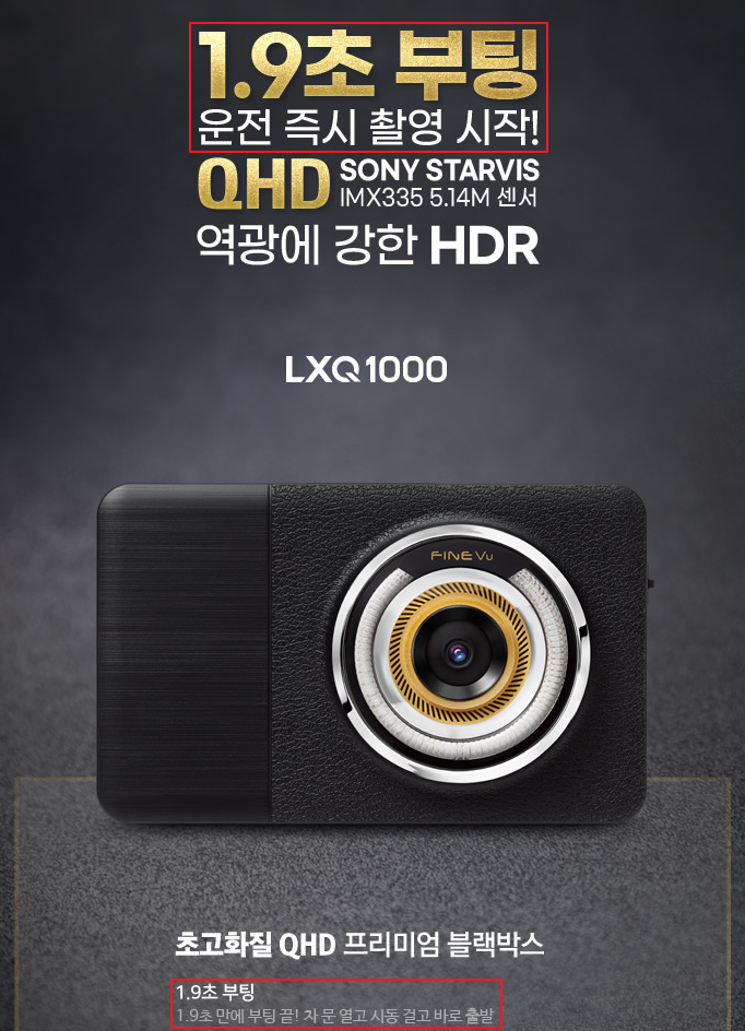 파인뷰 LXQ1000의 소개페이지에 나온 가장 첫번째 기능이 1.9초 부팅입니다.