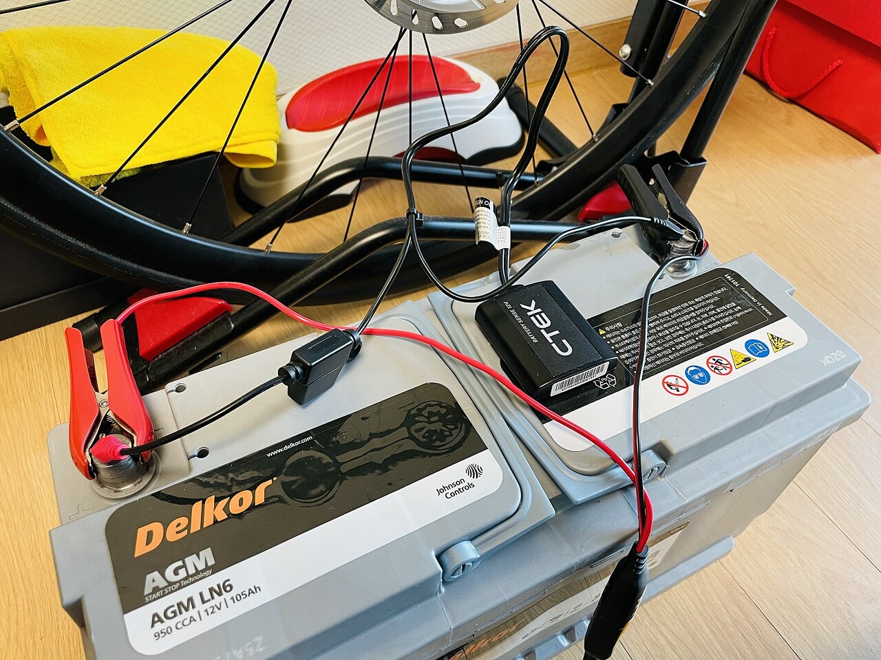 방에 가져간다음 CTEK 충전기를 물려봅니다.