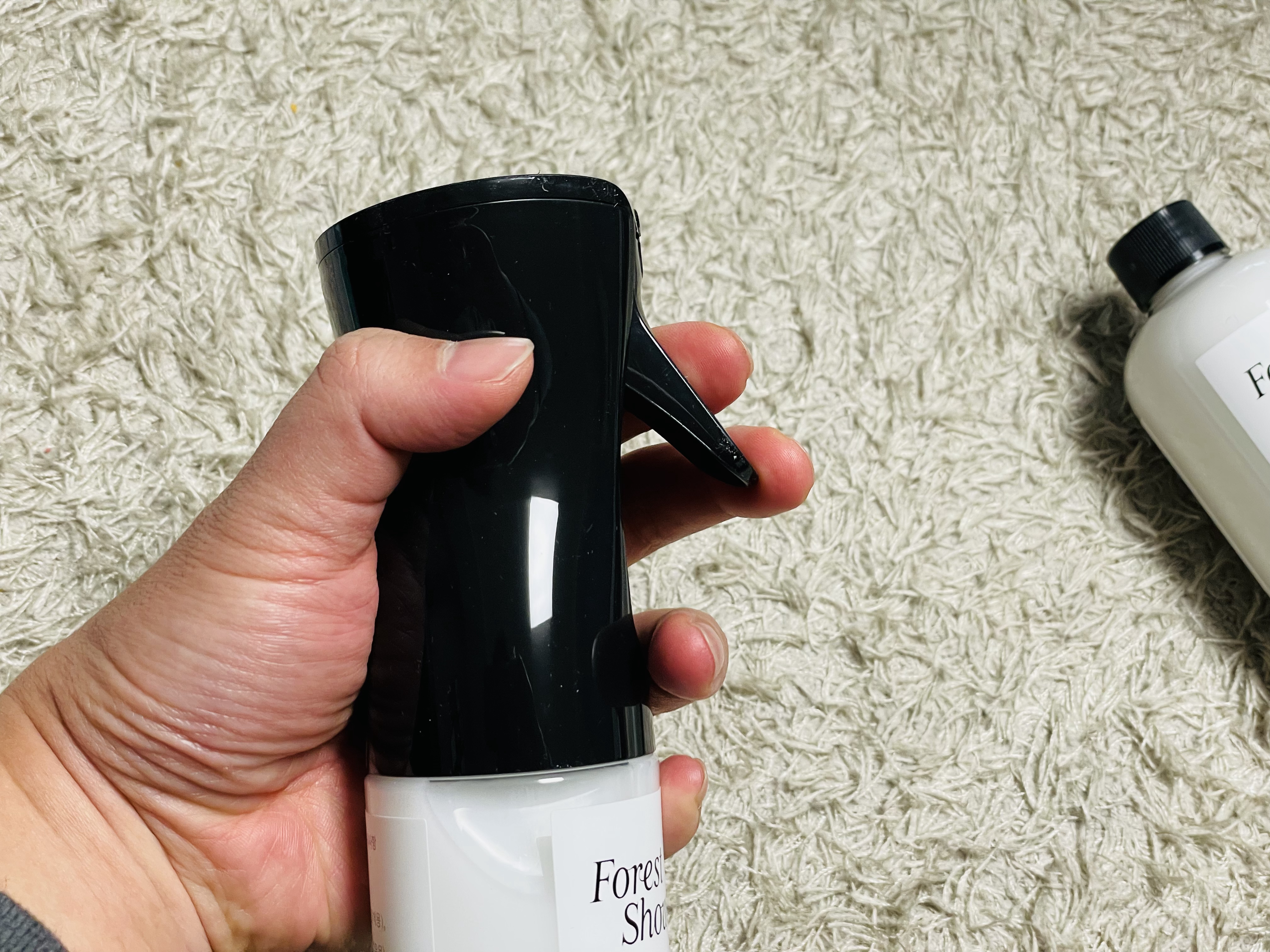 분사를 하면 누르는 순간에만 나오는 방식이 아닌 누르면 일정시간 곱게 분사가 되는 타입입니다.